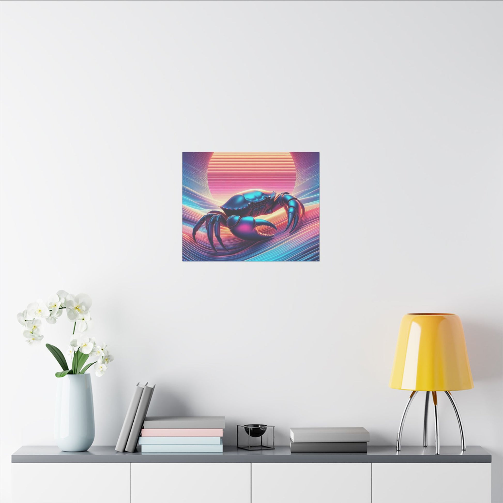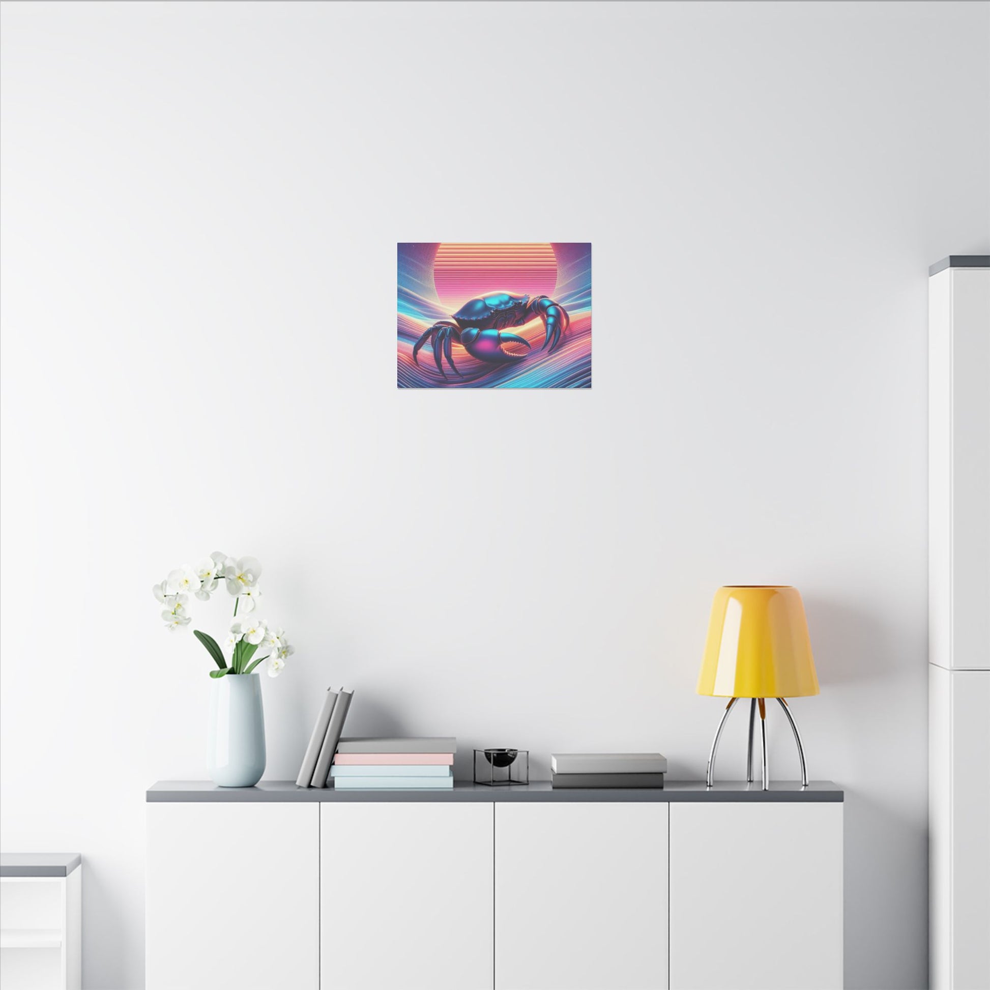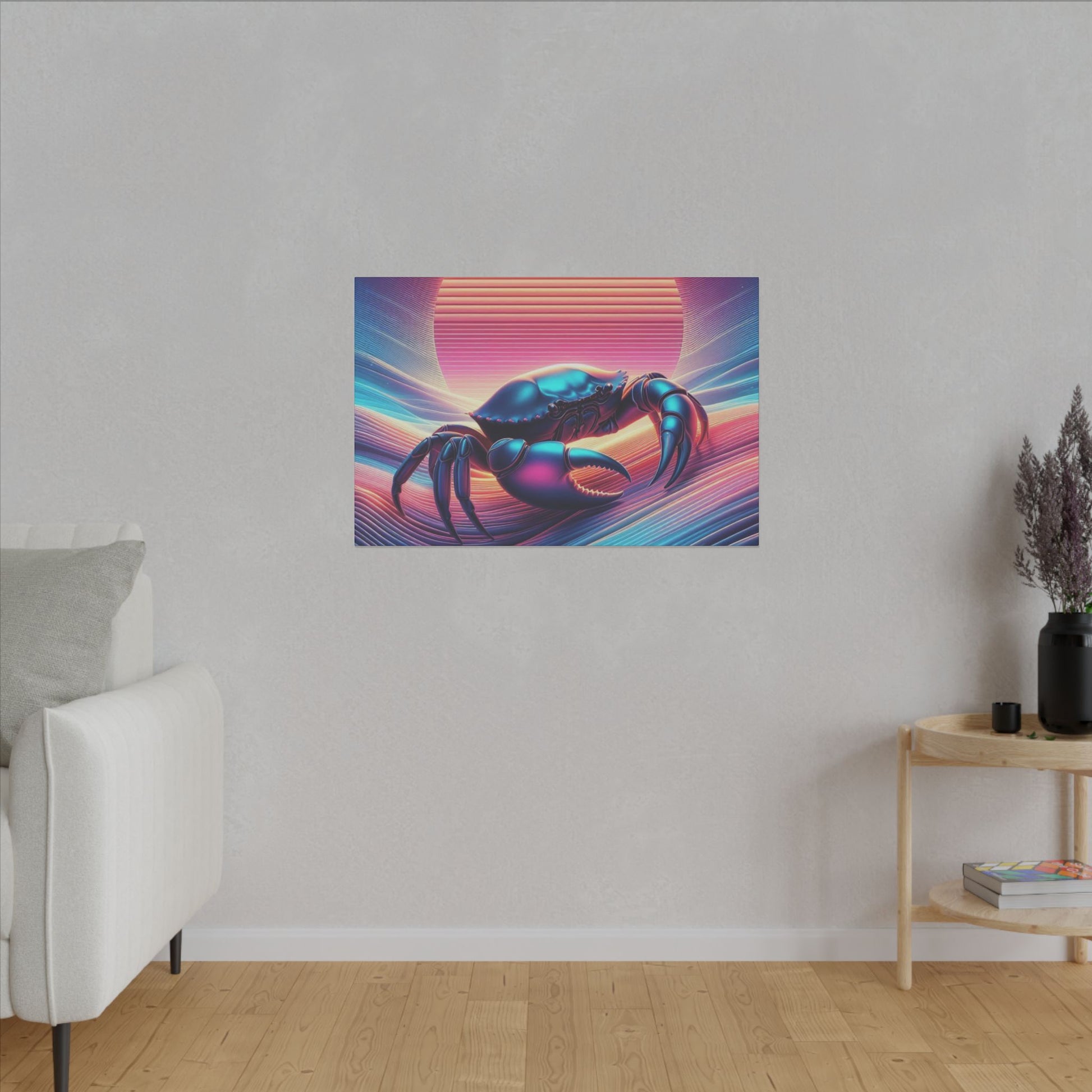 Retro Crab Art Canvas Wall Decor - Vibrant Sunset Design